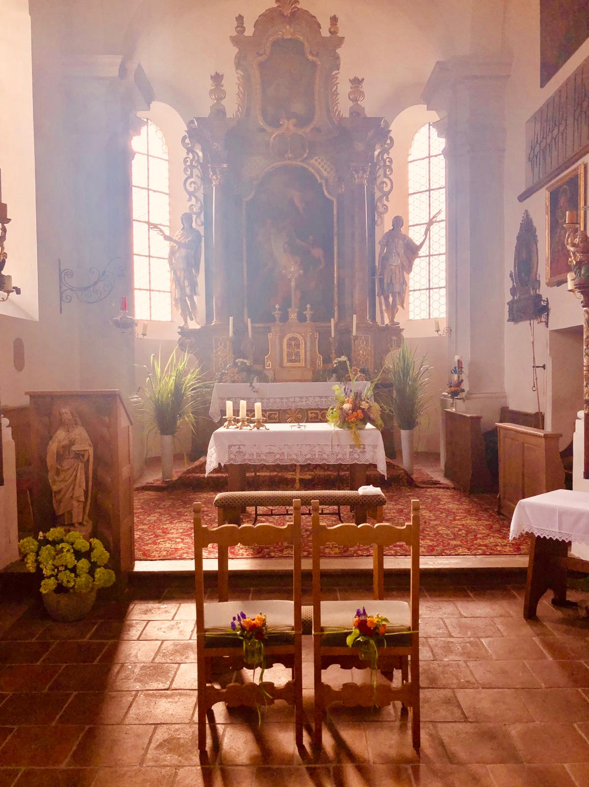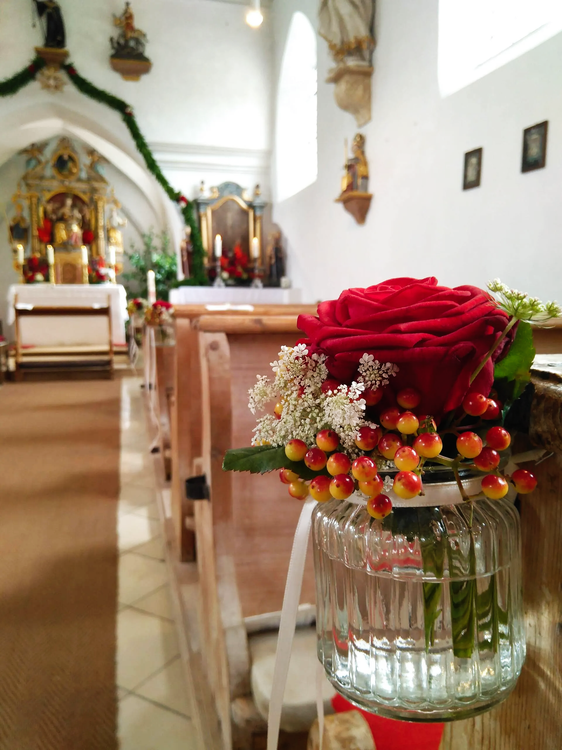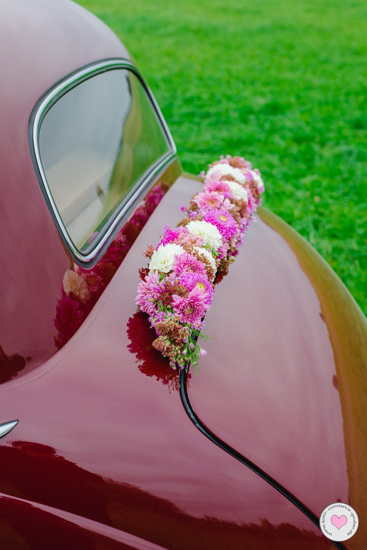 Die geschmückte Kirche, Auto und Location runde ich mit dem passenden Blumenschmuck ab.