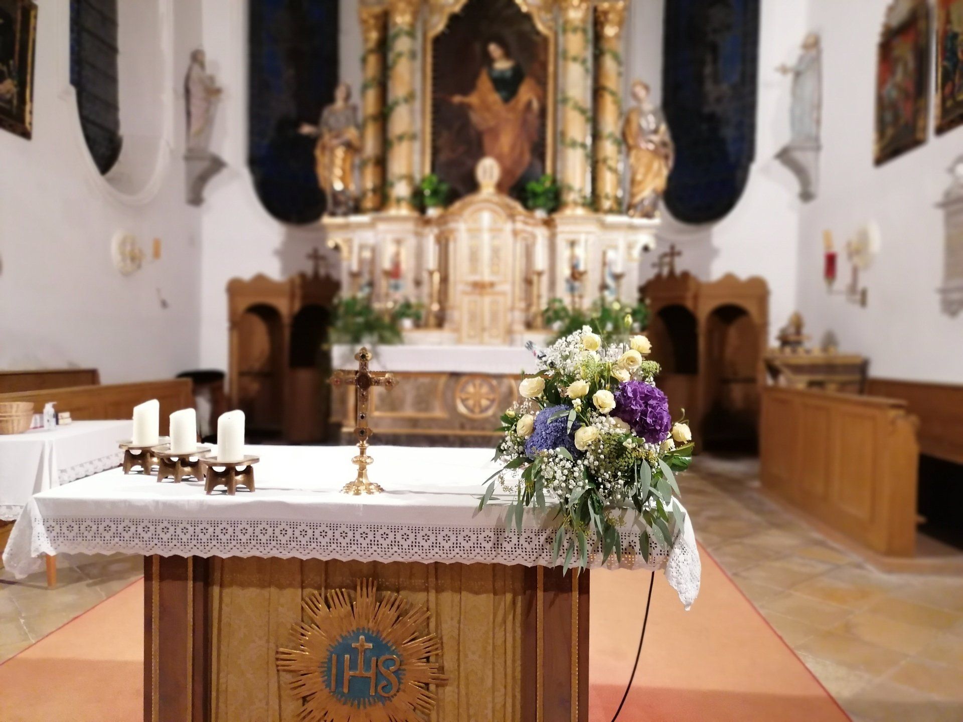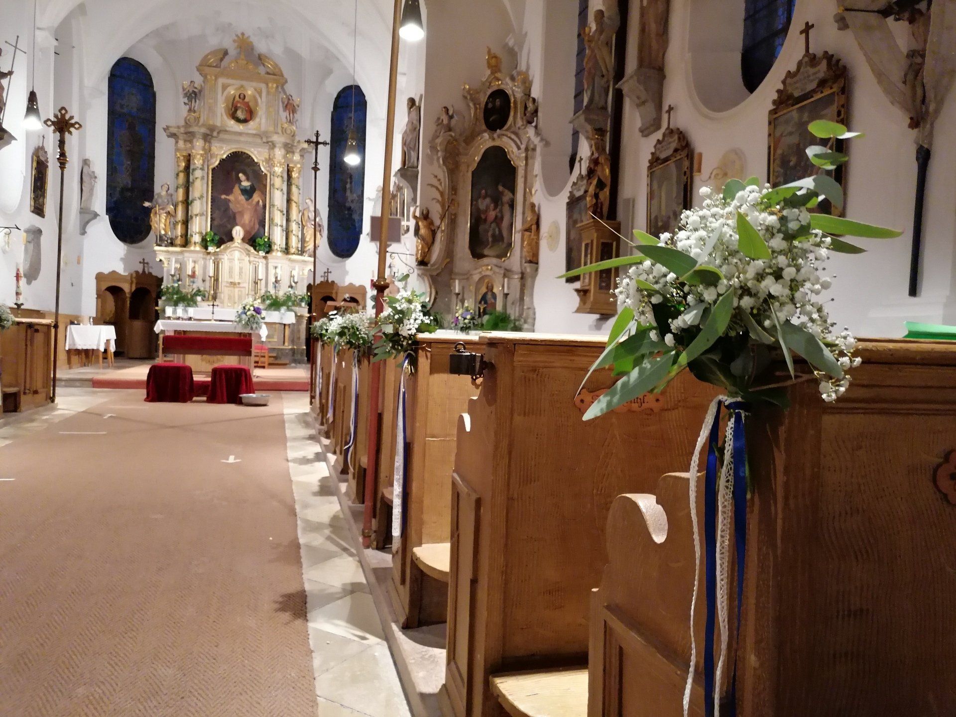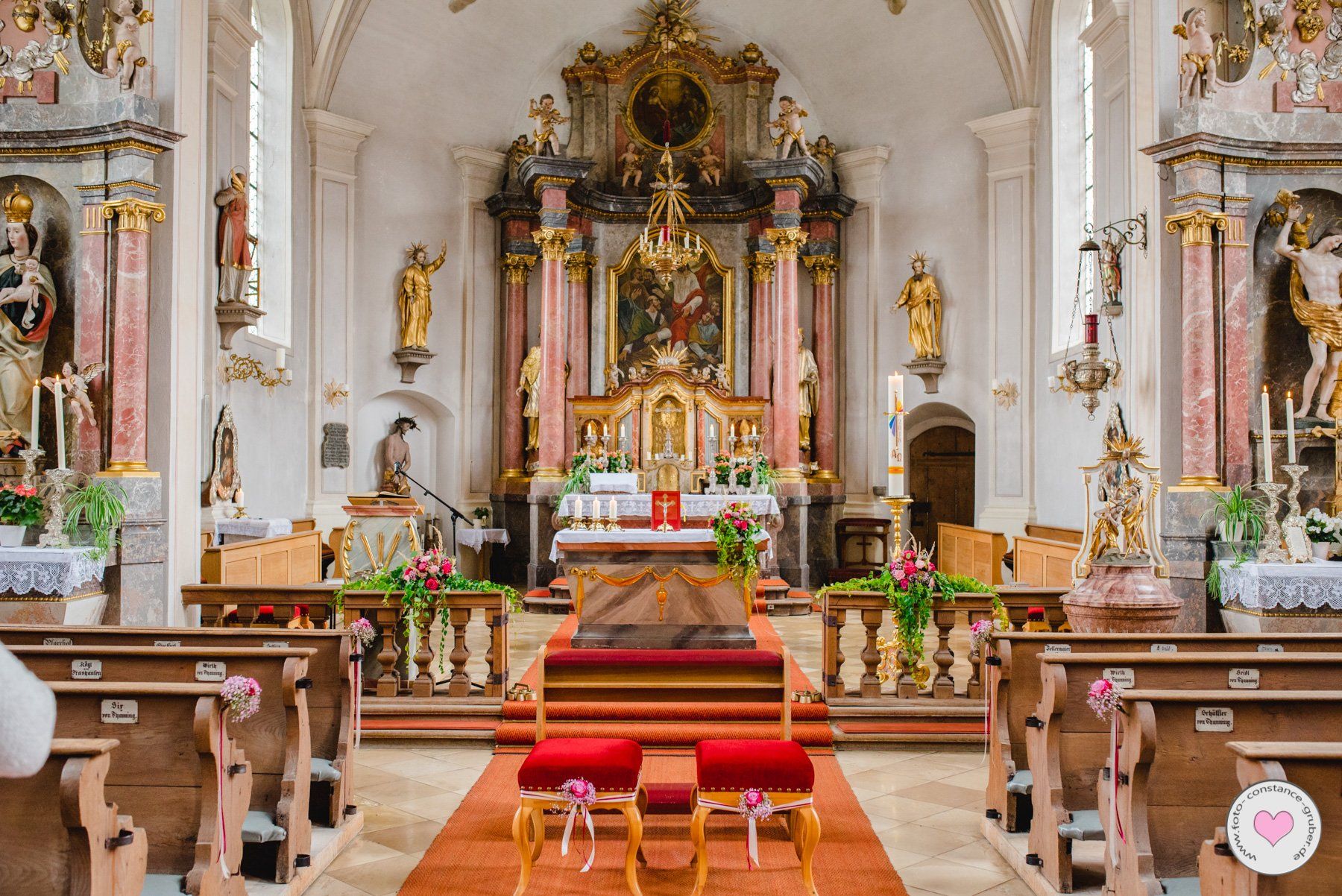 Die geschmückte Kirche, Auto und Location runde ich mit dem passenden Blumenschmuck ab.